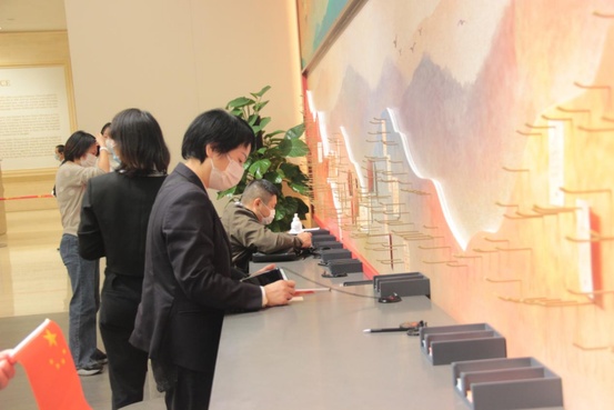 分公司寻访团队在工作人员的带领下参观了“伟大的开端——中国共产党创建历史陈列”,以“建党百年”历史进程为主线,通过大型立体式视觉置景,沉浸式体验了中国共产党从“历史选择 伟大起点”、“前仆后继 救亡图存”,到“民众觉醒 主义抉择”、“早期组织 星火初燃”,再到“开天辟地 日出东方”、“砥砺前行 光辉历程”,最后“不忘初心 牢记使命 永远奋斗”的过程。在参观中追寻初心印记,探访红色珍宝,深刻感悟中国共产党从萌芽到成立、从孕育到诞生的艰辛历程。参观完毕,寻访团队纷纷在许愿卡片上,写下对党和祖国的美好祝福,全员手持红旗在馆前合影,为这次寻访活动画上圆满句号。